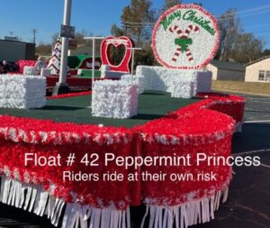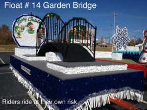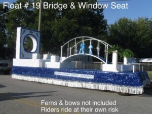 The float will be delivered as seen in the photograph to the lineup position. The float will arrive with a driver and vehicle to pull the float through the parade. A sign to identify the sponsor is placed on both sides of the float. The sign will be neat and easily read from a distance. Basic simple signs show best. Company/Organization logos will NOT be reproduced.